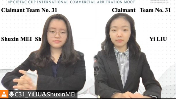 在11月16日至11月18日为期三天循环赛中,我校代表队主力辩手梅淑昕、刘奕在全英文“贸仲杯”模拟仲裁庭辩论赛中表现出色,沉着冷静地应对仲裁员的提问,展现了我校月舞直播