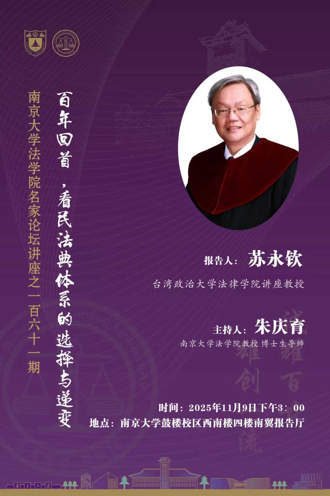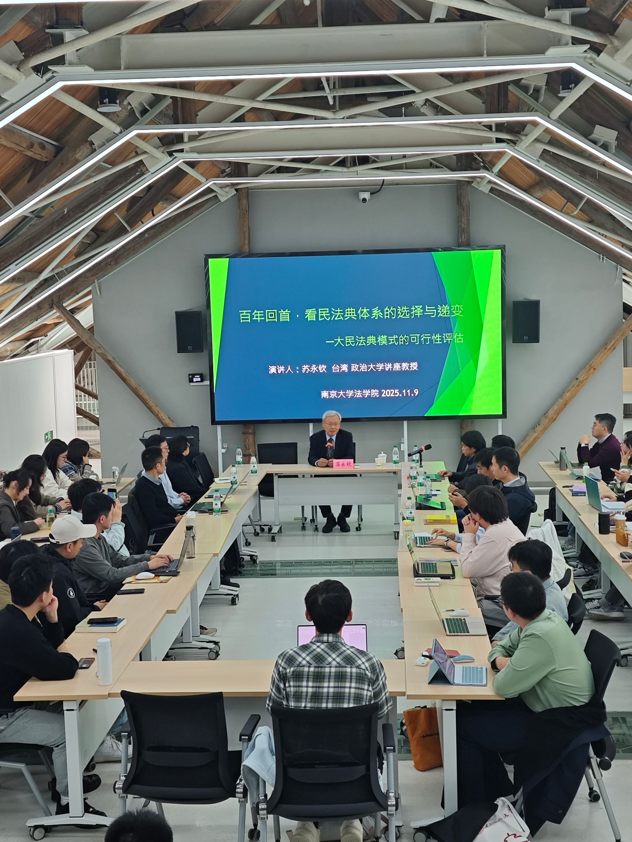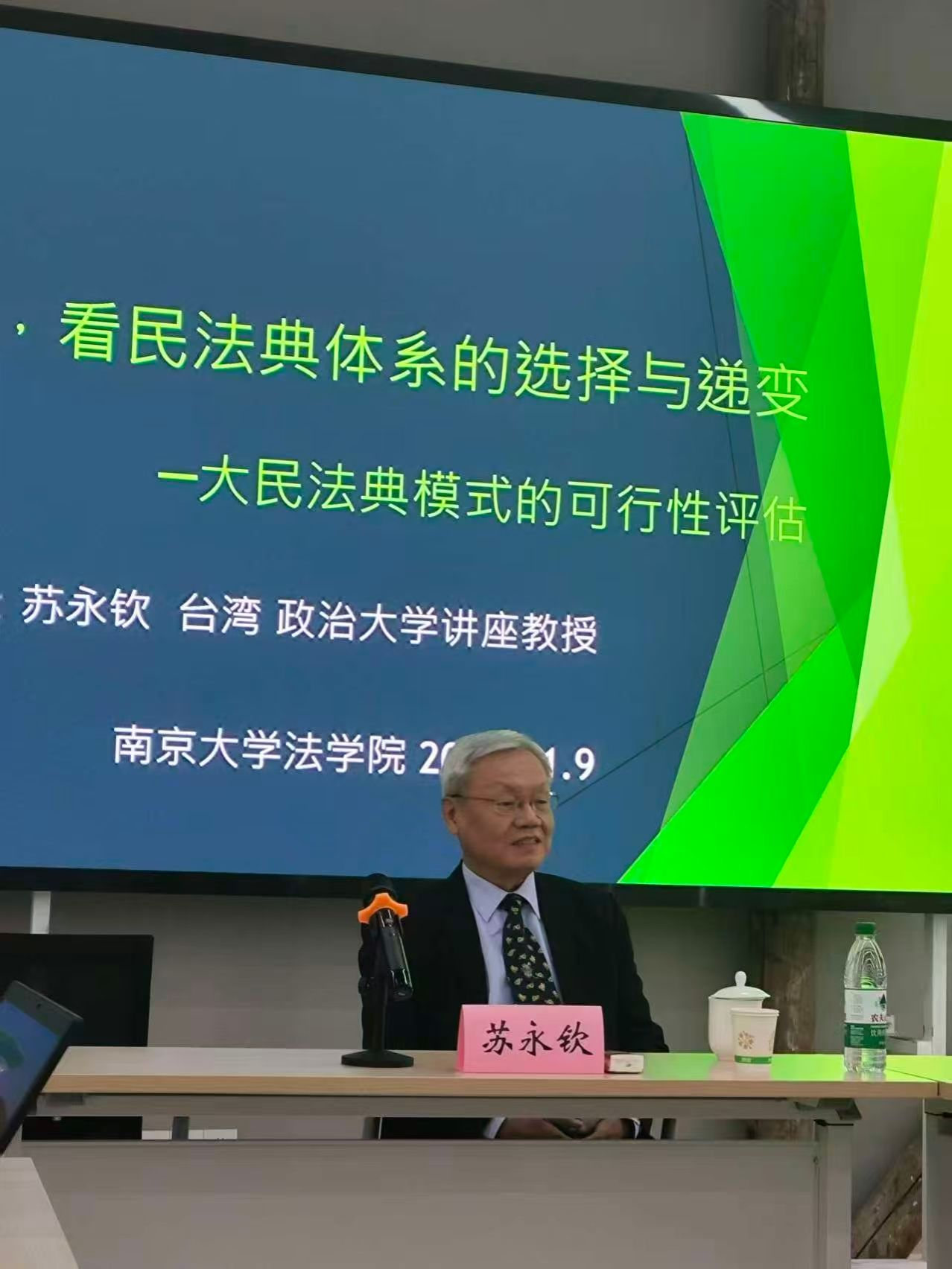 西南楼四楼南翼报告厅举行。本次讲座主题为“百年回首,看民法典体系的选择和递变——大民法典模式可行性评估”,由台湾政治大学法律学院讲座教授苏永钦主讲,月舞直播