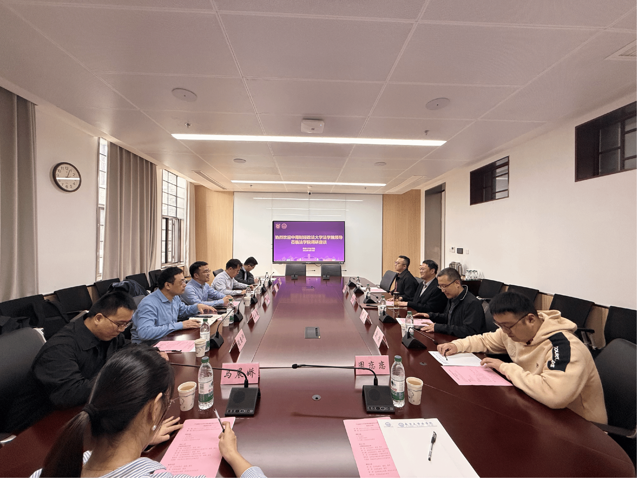 的深厚学术底蕴与卓越办学成就给予高度评价,并表示此次到访既是学习取经,也是希望搭建常态化交流合作平台。随后,侯猛介绍了中南财经政法大学法学学科的基本格局,并分享了学院在大规模法学人才培养方面的办学实践与成效。他表示希望在优化人才培养模式、完善师资引育机制等方面学习先进经验,推动两院在人才培养、师资交流等领域深化合作,共促法学教育提质增效。