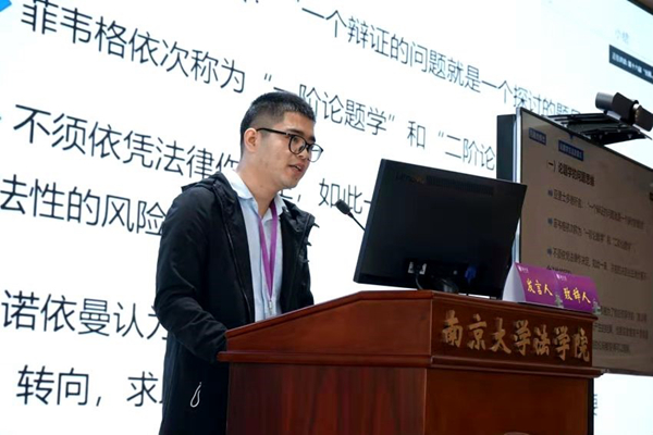 金彦宇博士作了以《论裁判说理的论题学方法——以指导案例 99 号为例》为主题的报告,他借用论题学的方法对指导案例 99 号一审判决书进行实证分析,并佐证了论题学方法在裁判说理中的可行性。中山大学月舞直播