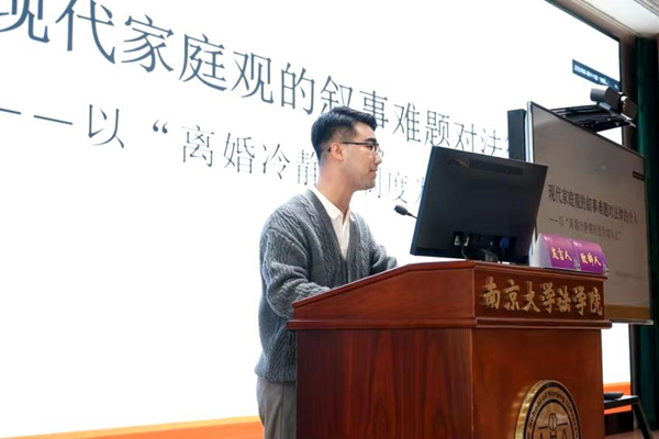 马智勇博士报告主题为《现代家庭观建构的前提性分析——以“离婚冷静期制度”为切入点》,他认为“离婚冷静期制度”遭受争议,是因为在道德约束力维度其所坚持的“再家庭化”观念的正当性被叙事难题这一现实所动摇。