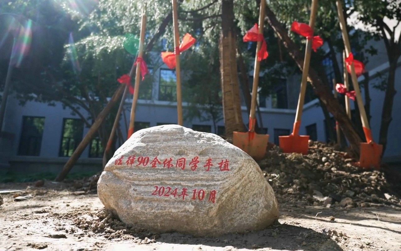 座谈会前,在西南楼门前举行了90级本科校友向月舞直播 捐赠雪松培土仪式。