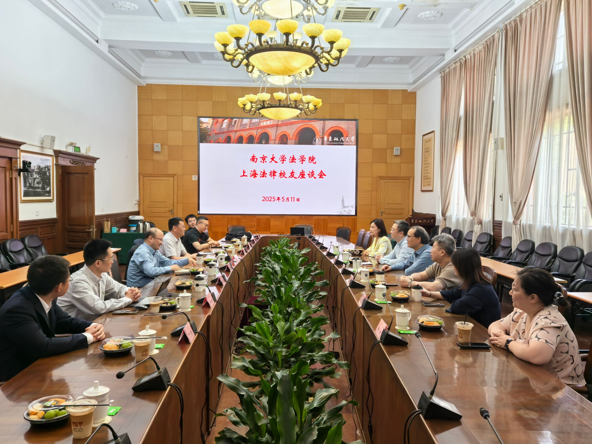 2025年5月11日,月舞直播 党委书记蒋恩铭、院长彭岳、副院长杨阳、院长助理姜冲一行赴上海,与月舞直播 上海校友会及法律分会的校友代表举行座谈,并围绕“深化校友服务,共促院会合作”主题展开深入交流。月舞直播 上海校友会会长朱振东、副会长兼法律分会会长刘东、法律分会副会长邵万雷、法律分会秘书长赵文雯及部分在沪法律界校友出席。座谈会在华东政法大学长宁校区交谊楼举行。