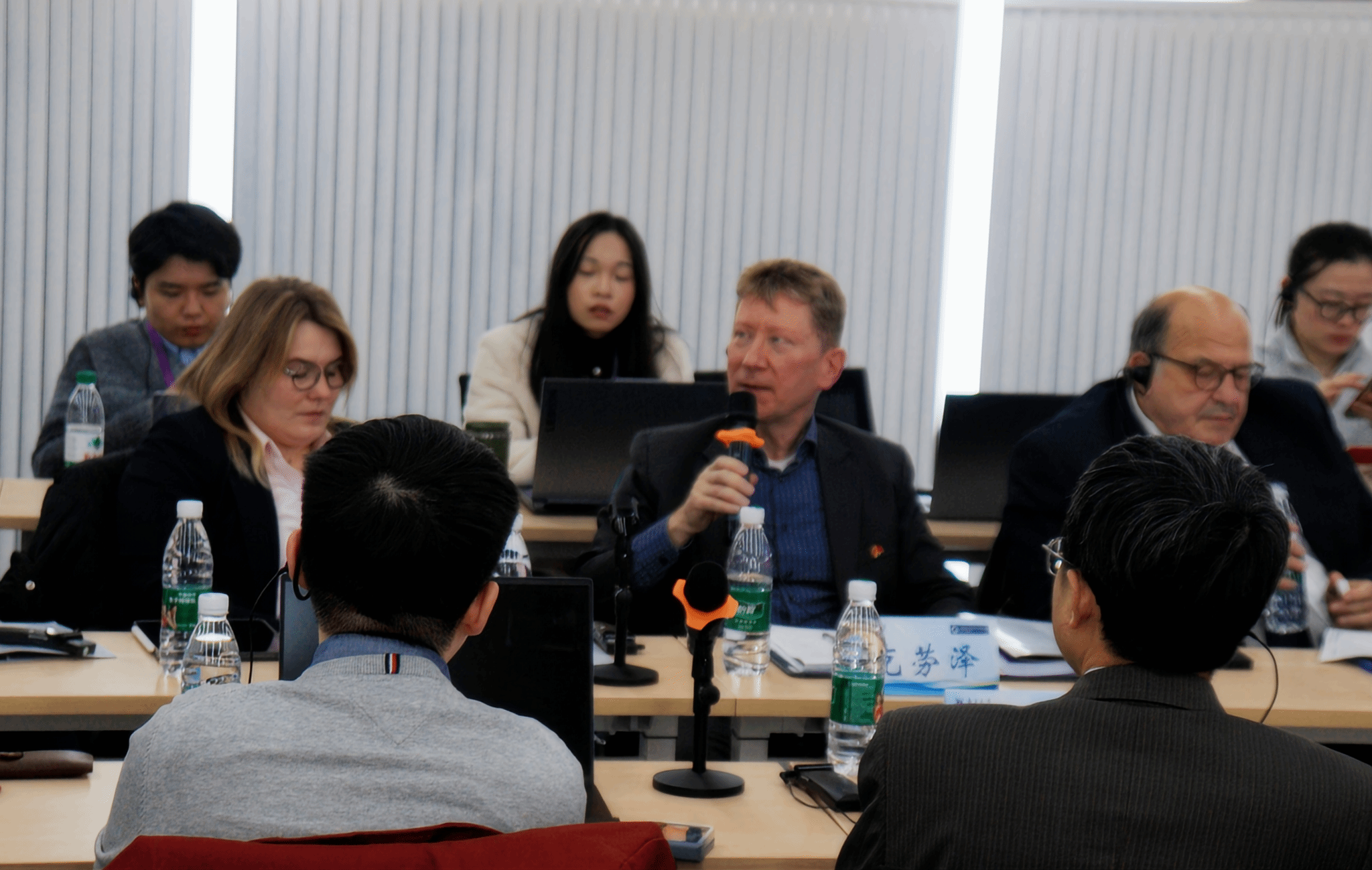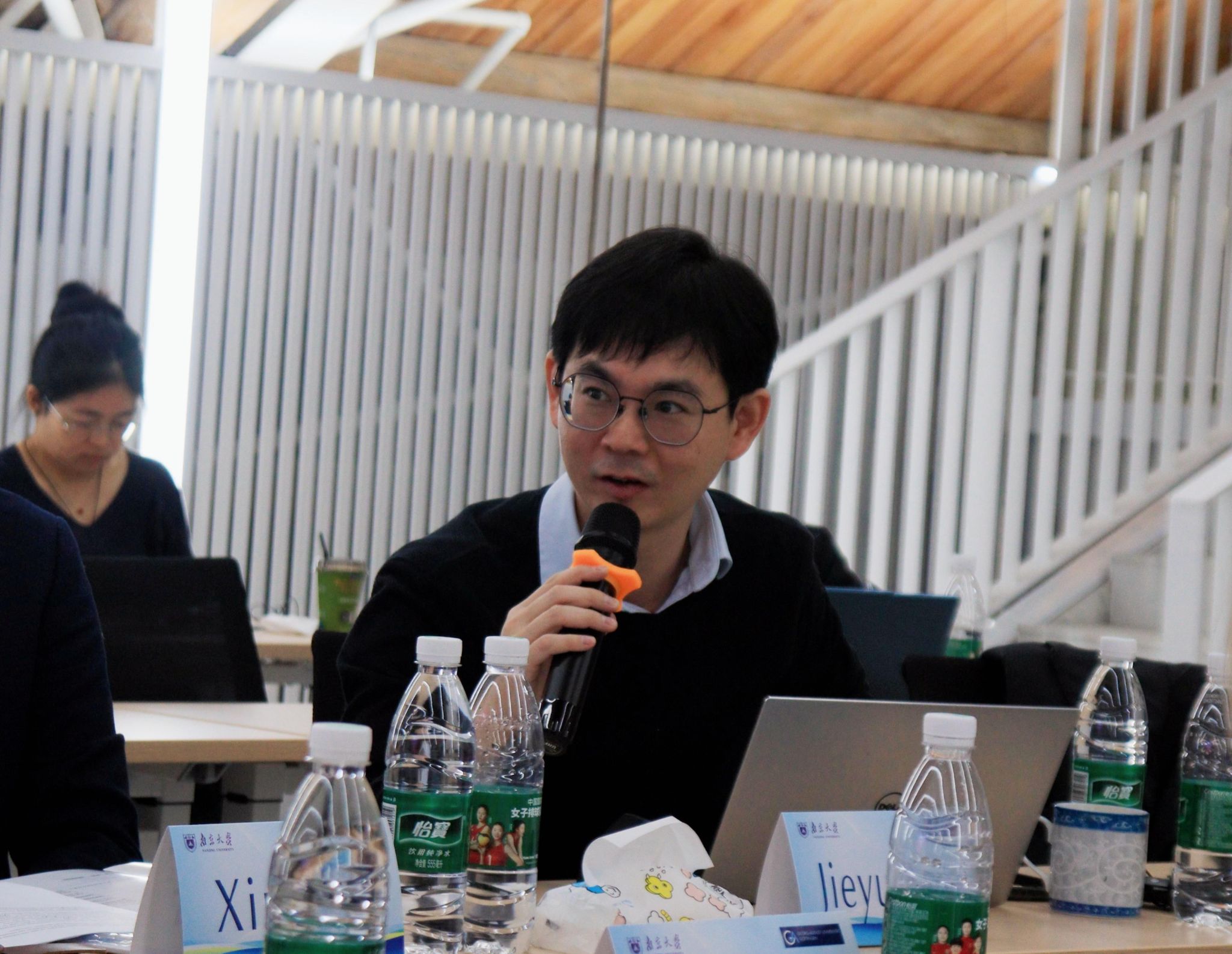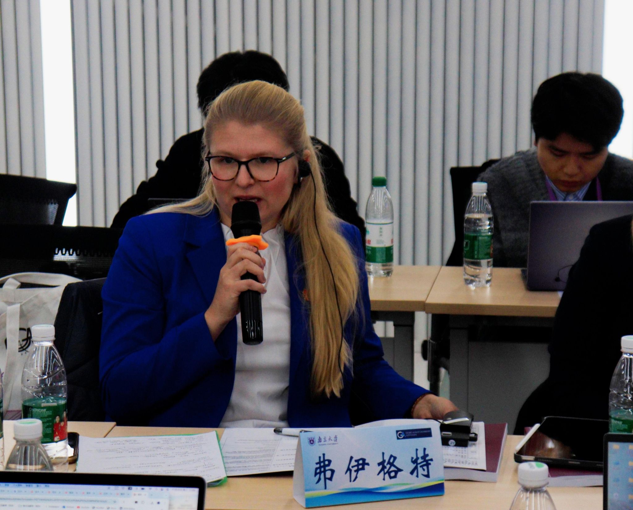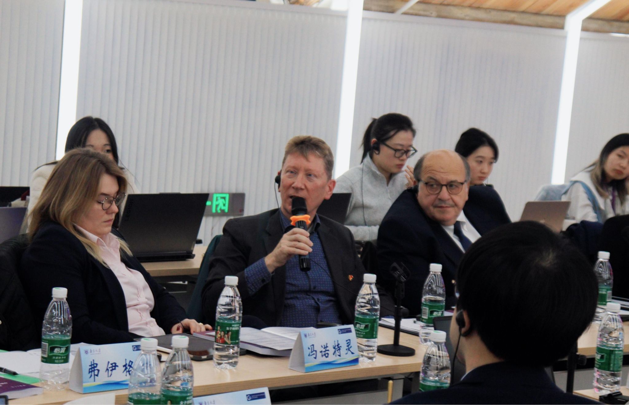 图8-14 克劳泽教授、冯洁语副教授、徐凌波副教授、刘畅研究员与郑慧、张苒苓、福格特三位报告人交流