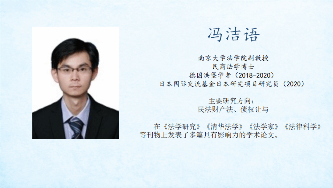 在研究外国法时,不能仅局限于阅读条文,否则是难以做好比较法研究的。在指导学生撰写论文时,我常强调做比较法研究不仅要了解外国法律的规定,还要阅读教材并研究其司法判决,只有这样,比较法研究才是有意义的;单纯比较条文的价值是很低的,因为法律的生命在于实际运作,而非条文本身。这就是所谓的功能比较。孙维飞老师常说,法律是千古人情,不管是哪个国家都会面临诸如信赖保护等问题,但各个国家可能会选择不同的保护路径,达到大致相当的结果。我们的研究如何揭示这一点就很重要。