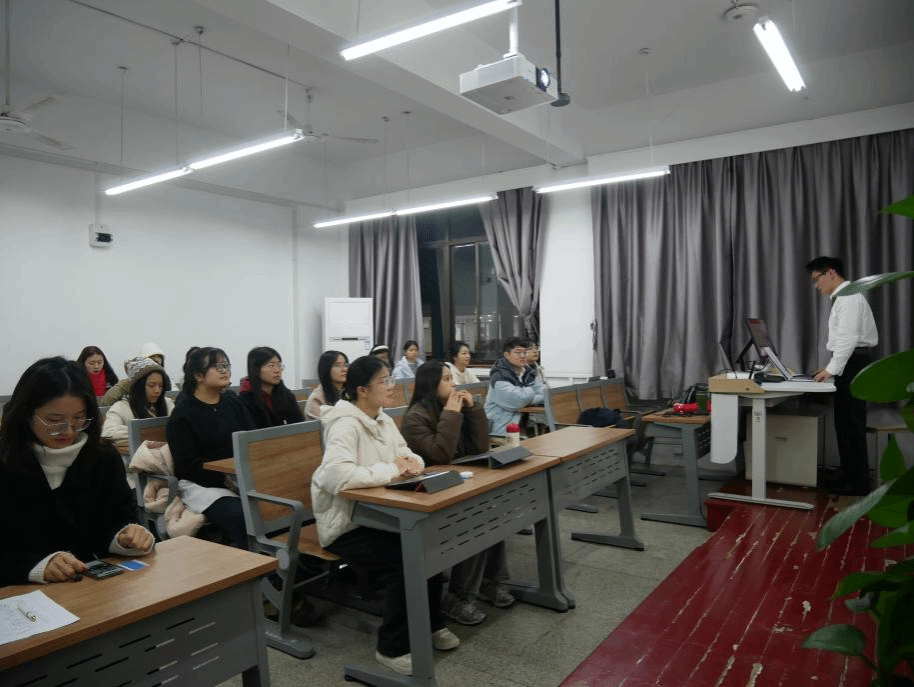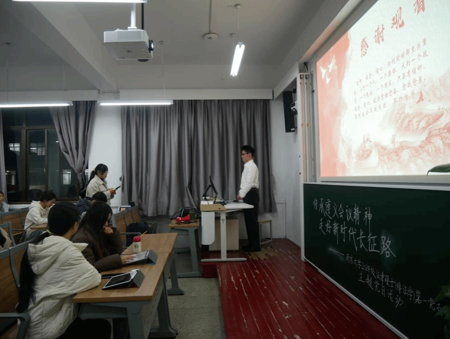 2024级法律硕士(非法本)第一党支部的同学们开展活动。宣讲团成员何坤衡以“传承遵义会议精神,走好新时代长征路”为主题进行宣讲。
