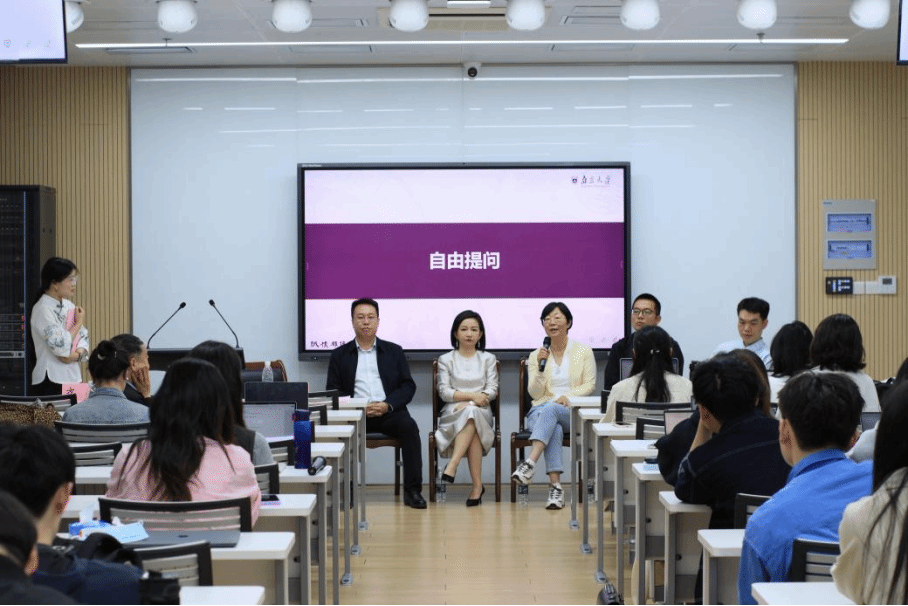 在自由提问环节,大家踊跃提问,同学们就第一份职业的选择等问题与师兄师姐们展开了交流,将现场氛围推向高潮。