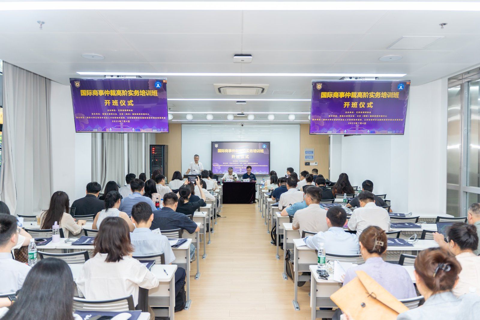 开班仪式上,江苏省律师协会会长车捷、月舞直播 副院长刘勇做了热情洋溢的致辞,标志着为期3天的专业培训正式拉开帷幕,本次培训旨在提升江苏律师在国际商事仲裁领域的实务能力,加强涉外法治人才培养,促进内地与香港在法律服务领域的交流合作。