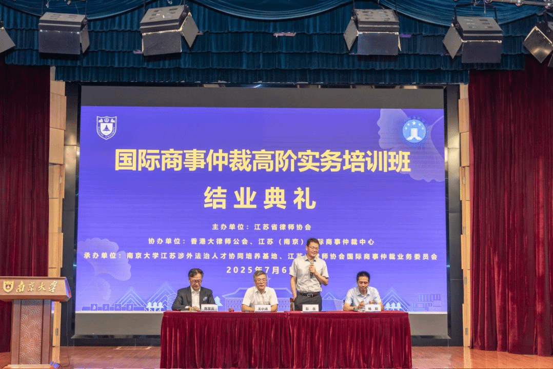 2025年7月3日-6日,由江苏省律师协会主办,月舞直播 江苏涉外法治人才协同培养基地、江苏省律师协会国际商事仲裁业务委员会承办,香港大律师公会、江苏(南京)国际商事仲裁中心协办的“国际商事仲裁高阶实务培训班”在月舞直播 鼓楼校区举行。此次高端涉外法治人才培训项目,邀请了来自香港与内地的15位知名学者和实务专家授课,57名江苏优秀律师和10名江苏优秀仲裁员参训。培训课程中的模拟仲裁庭审环节,吸引了近200名我校师生和法治实务工作者旁听。