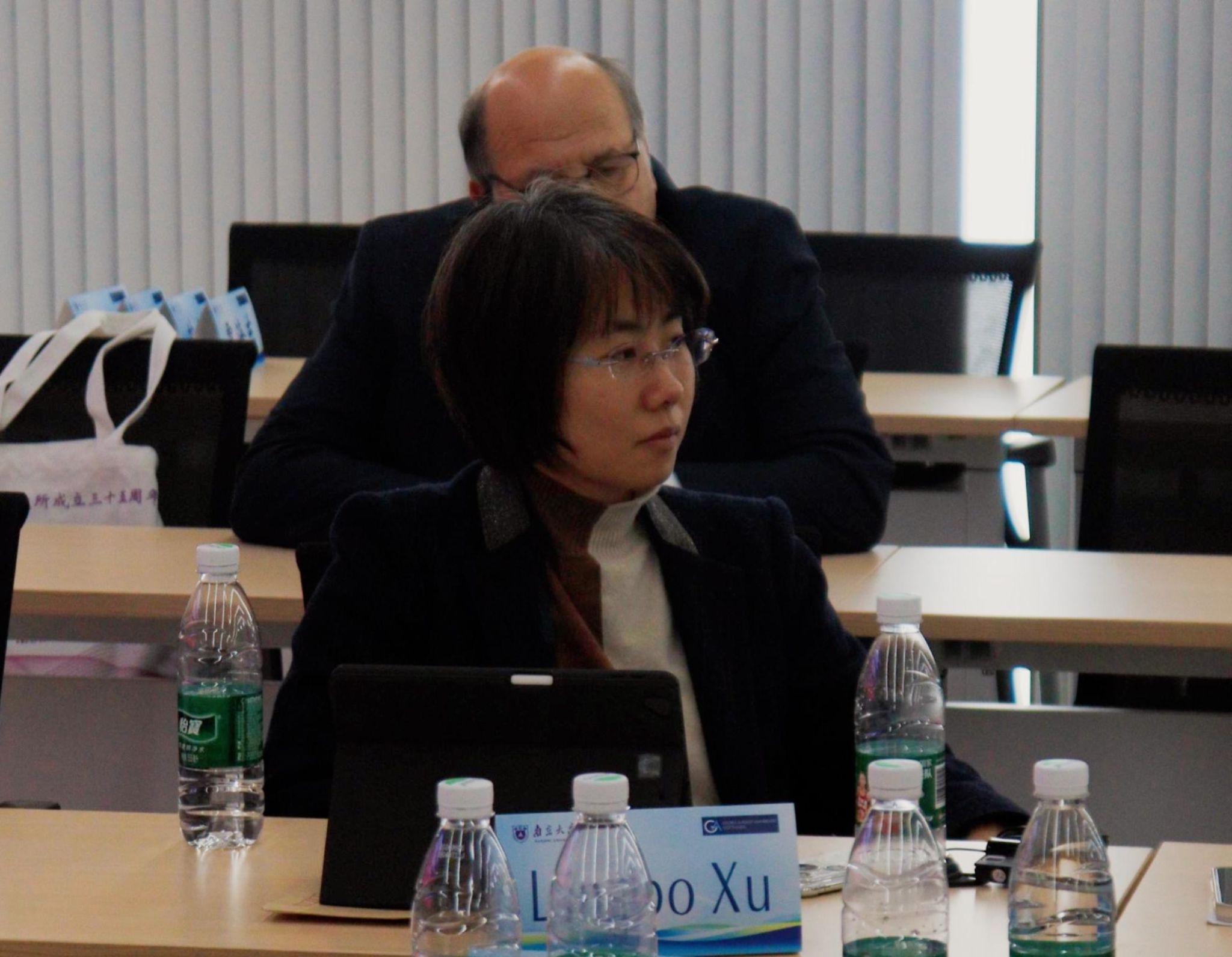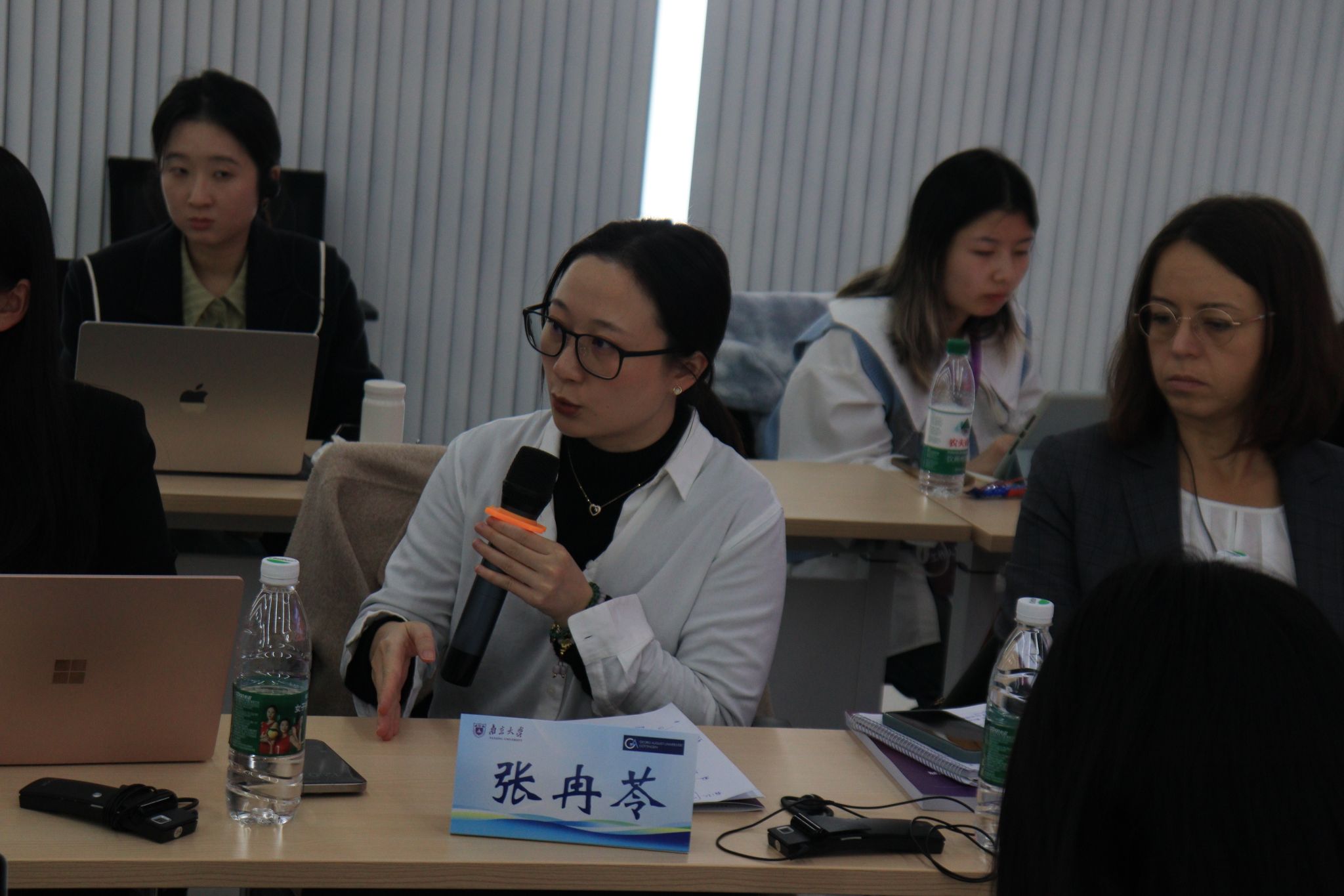 图8-14 克劳泽教授、冯洁语副教授、徐凌波副教授、刘畅研究员与郑慧、张苒苓、福格特三位报告人交流